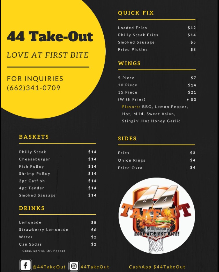 At 44 Takeout Food Truck and Catering in Starkville MS. Latoya is passionate about delivering delicious, mouthwatering food experiences right to you or your event in Starkville MS. A little background on where the name for 44 Takeout came from. Family members shared the same number in basketball and her passion for cooking just made the perfect name for her food truck in Starkville MS.
